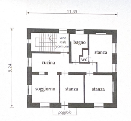 L'immobile si trova al primo piano ed è composto da una luminosa zona giorno con cucina, tre camere da letto - di cui una con bagno di servizio privato - e un secondo bagno spazioso.