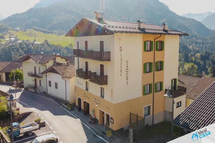 Vendesi albergo in posizione panoramica a Prade, caratteristica località immersa nel verde della Valle del Vanoi. La struttura si sviluppa su quattro piani: al piano seminterrato troviamo ampie taverne, il locale tecnico ed un bagno; al piano terra un ristorante ben attrezzato con cucina e bar accoglie gli ospiti in un ambiente curato e funzionale. Dal primo al terzo piano si distribuiscono diciotto camere da letto, in alcuni casi dotate di balcone con vista.