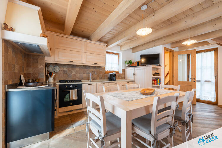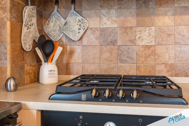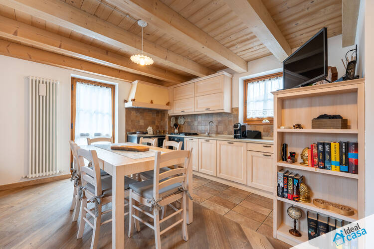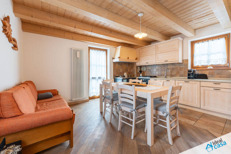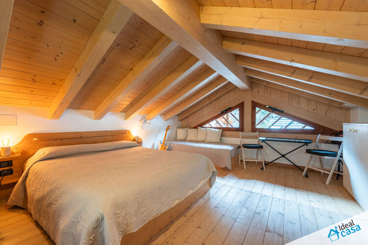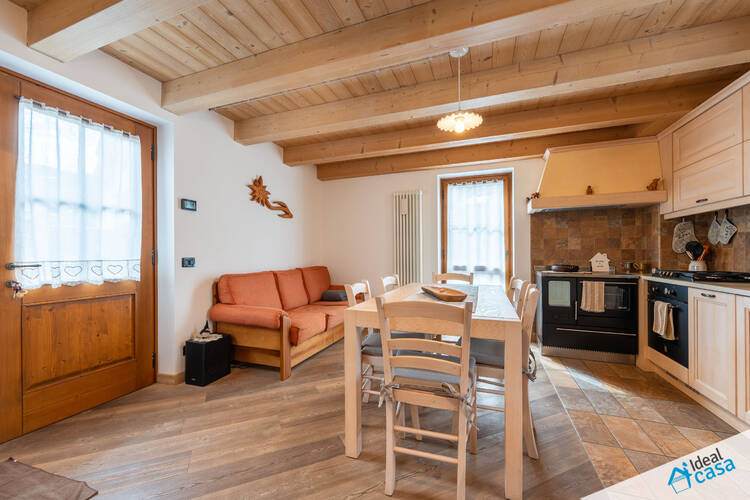L'abitazione si sviluppa su più livelli: al piano terra troviamo una spaziosa camera da letto e un bagno; al primo piano si apre la zona giorno con angolo cottura, accesso ad un balcone esposto a sud ed a una spaziosa terrazza; al secondo piano è presente una soffitta ristrutturata, attualmente attrezzata con letto matrimoniale.