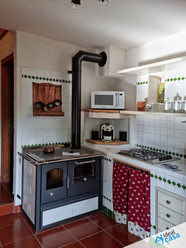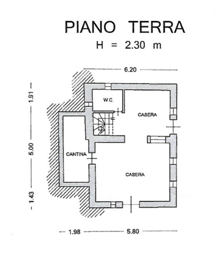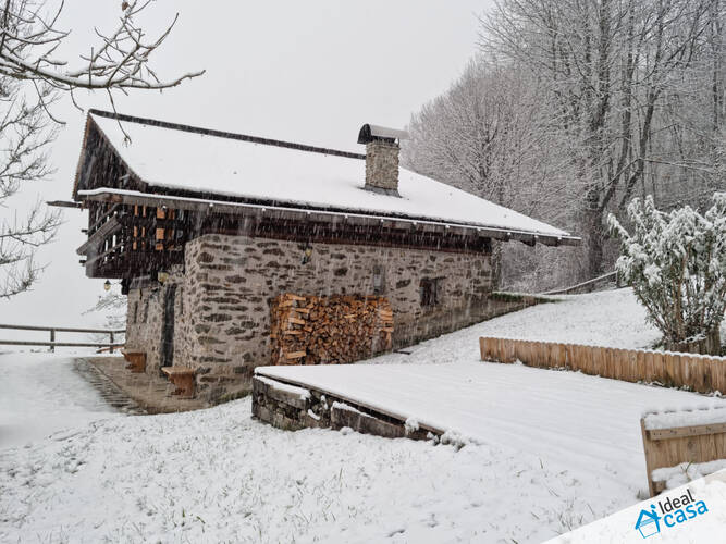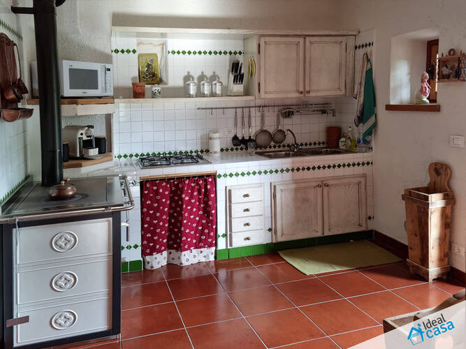 Al piano terra si trova una zona giorno accogliente con stufa a legna, cucina , bagno e cantina interrata . Al piano superiore si sviluppa la zona notte , composta da due ampie camere da letto e un balcone panoramico.